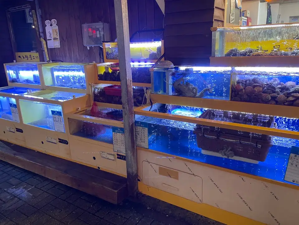 깨끗한 수조에 각종 해산물이 있었는데 신선해 보였어요
