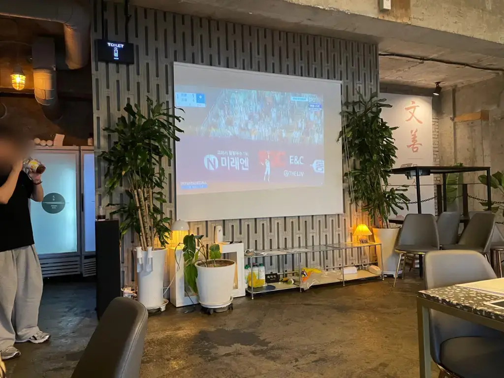 야구 시즌에는 스크린으로 경기 중계도 볼 수 있더라고요.